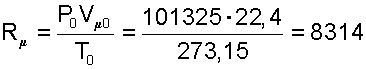 Определение универсальной газовой постоянной было осуществлено экспериментально на газах при малых значениях давлений. При малых давлениях расстояние между молекулами газа очень большие, силы межмолекулярного взаимодействия практически отсутствуют, а свойства реальных газов близки к свойствам идеальных газов. Известно, что при нормальных физических условиях P0=760 мм рт.ст.=101325 Па и Т0=273,15 К один киломоль всех газов занимает объем Vμ0=22,4 [м3/кмоль]. Подставив эти параметры в уравнение (4.5) получим численное значение универсальной газовой постоянной и ее размерность [Дж/(кмоль·K]
