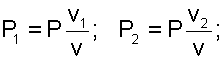 Если убрать перегородку, то произойдет типично необратимый процесс диффузионного смешения газов с возрастанием энтропии системы. В соответствии с законом Дальтона каждый газ при расширении ведет себя так, как будто другого газа в сосуде нет. При этом в конце процесса смешения каждый газ будет занимать весь объем сосуда V, а парциальные давления газов будут определяться выражениями