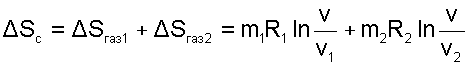 Изменение энтропии газов в этом процессе будет определяться выражением
