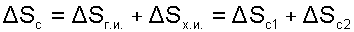 Внешняя необратимость за счет ΔT1 приводит к увеличению энтропии системы на величину ΔSТО1. Внутренняя необратимость увеличивает изменение энтропии системы на величины ΔSРАСШ и ΔSСЖ, что соответствует разности энтропий отрезков 34 и 12. Внешняя необратимость ΔT2 приводит к увеличению энтропии системы на величину ΔSТО2. Другими словами, увеличение энтропии холодного источника теплоты ΔSХ.И. по сравнению с горячим источником теплоты ΔSГ.И. обусловлено внешней необратимостью (ΔT1), внутренней необратимостью адиабатных процессов расширения и сжатия и внешней необратимостью (ΔT2). В итоге имеем увеличение энтропии нашей системы в виде разности энтропий горячего и холодного источников теплоты, соответствующей величине
