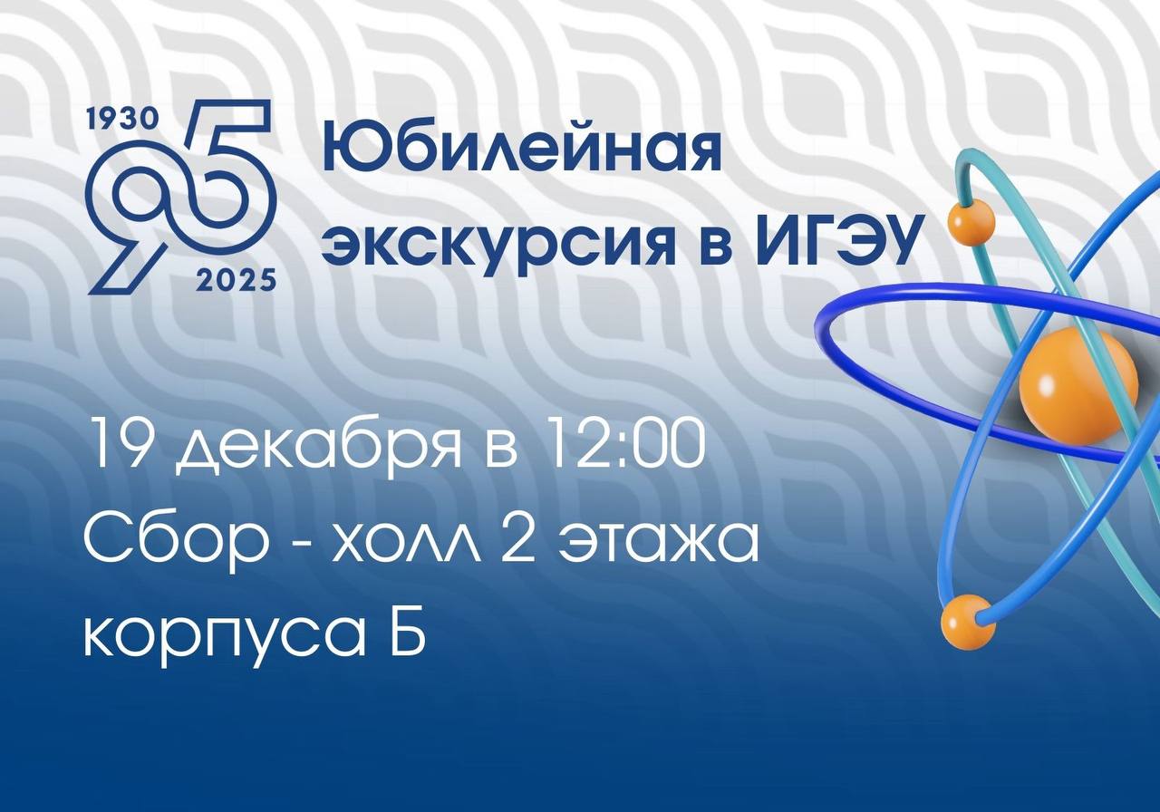 В честь 95-летия ИГЭУ и в рамках программы юбилея «ИЭИ–ИГЭУ: 95 лет Alma mater» состоится экскурсия по учебным и научным пространствам университета.